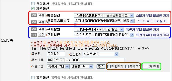 *녹색사각=수량단위할인기응을 추가하였습니다[10]단위적용시에