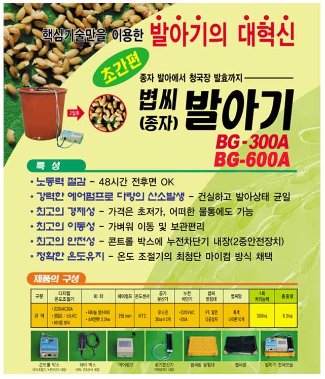 볍씨 발아기 2012년형 새제품(BG-600A) 입니다.