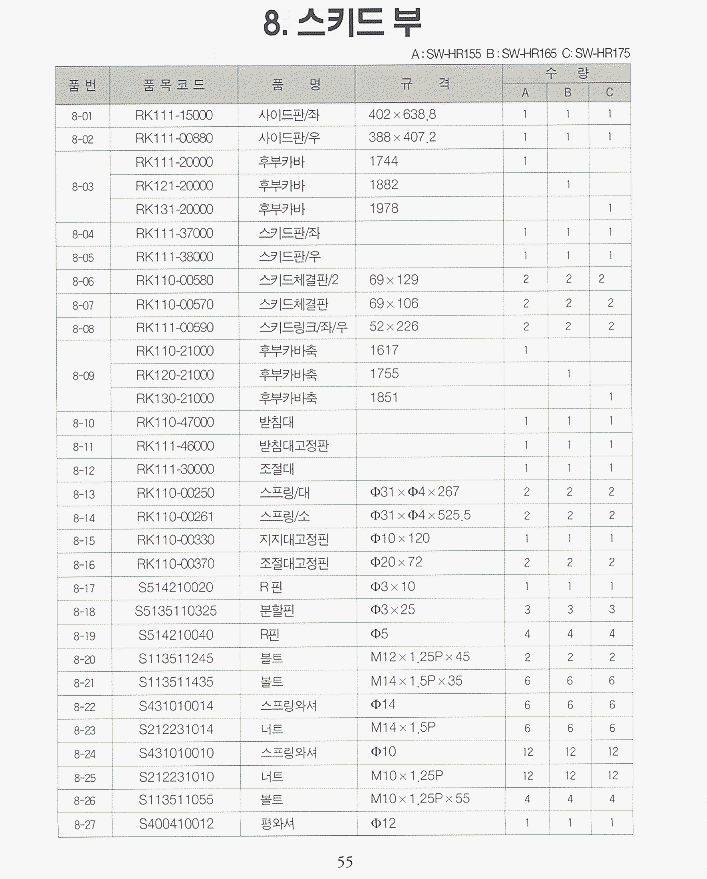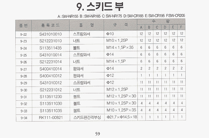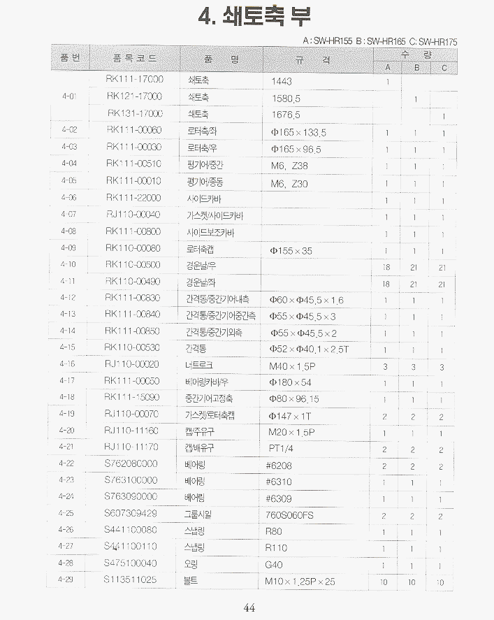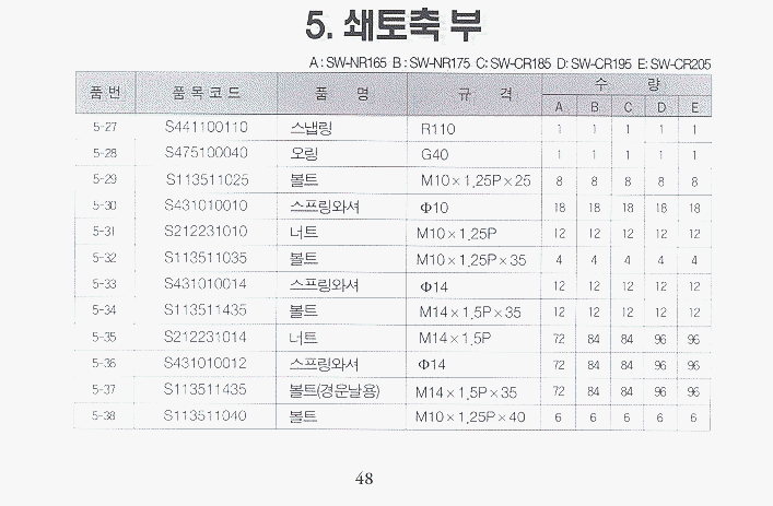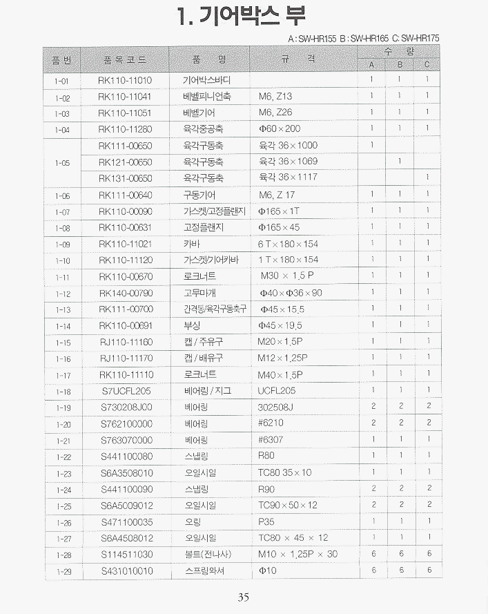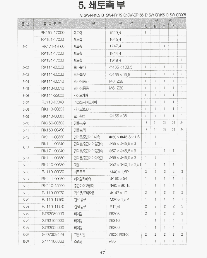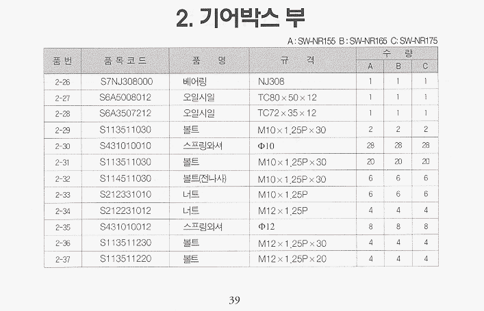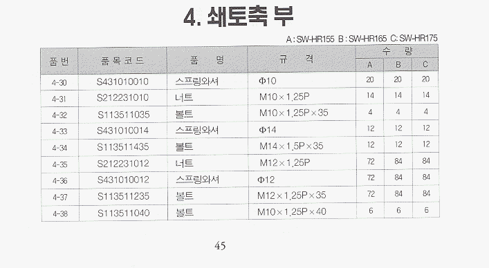 (완성품) | 등록책자 | 일괄부품 | SW-HR155_편심 | SW-NR155 | SW-NR165 | SW-NR175 | SW-HR165/HR175_편심 |