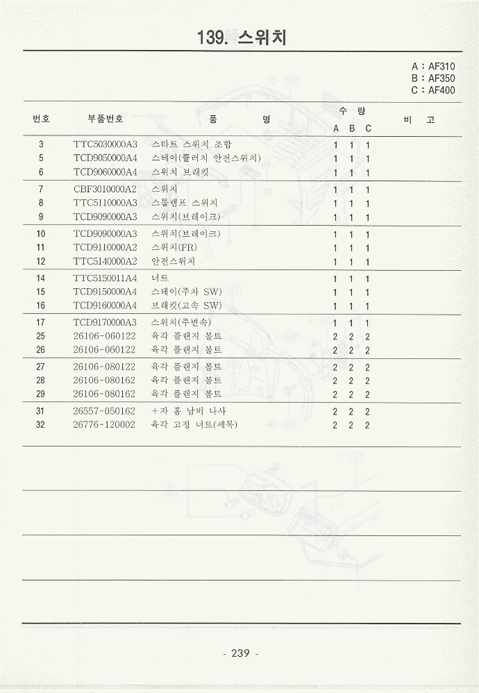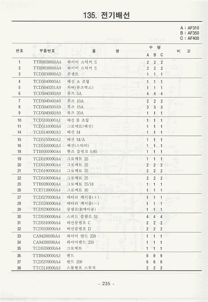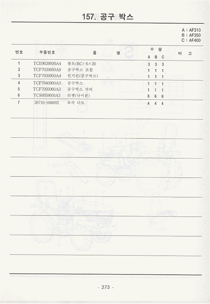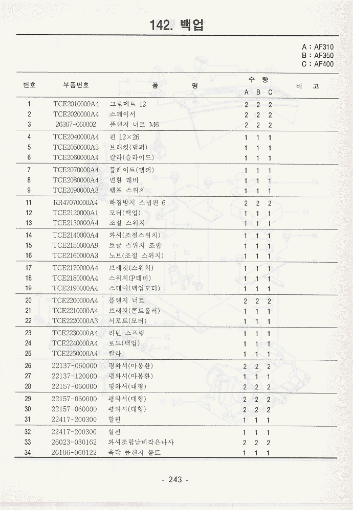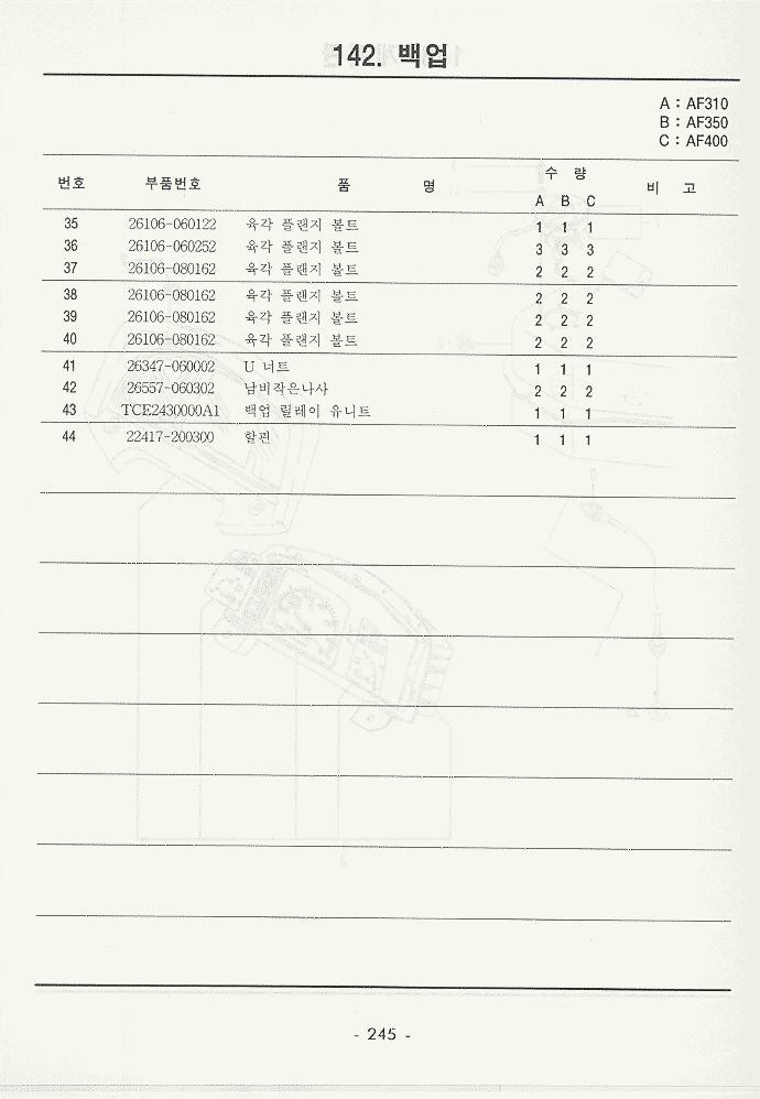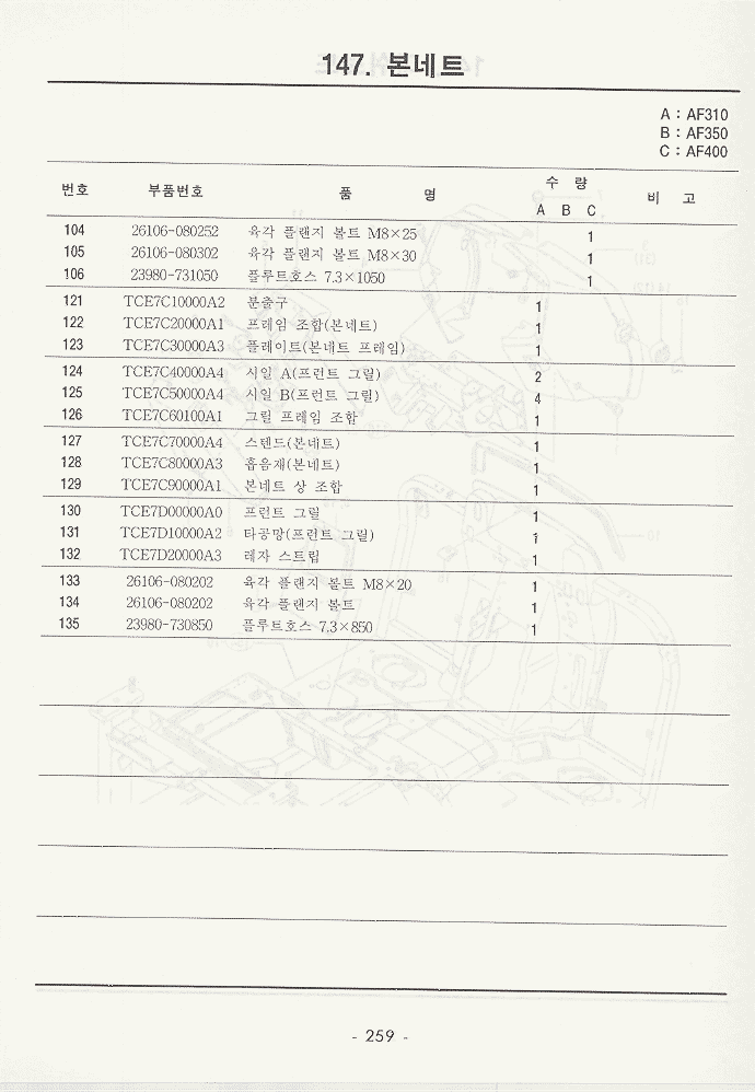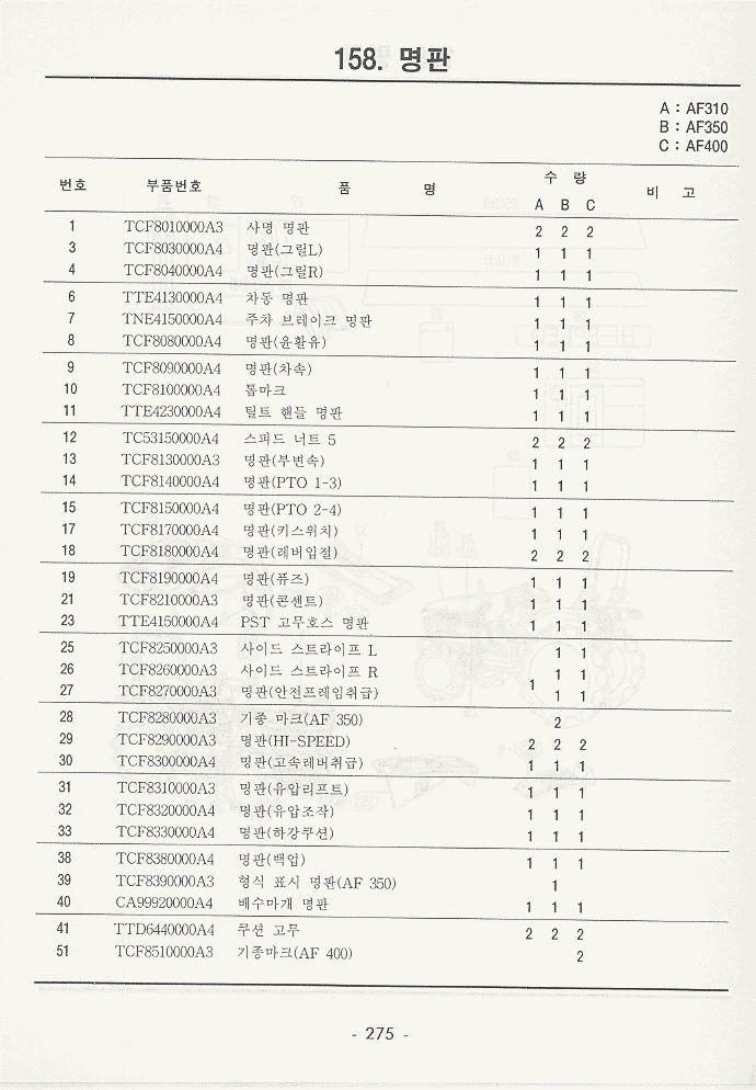 현재위치 : Home >> 트렉타 >> 국제트렉타+존디어트렉타 >> 등록책자 >> AF310_AF350_AF400 >> 234~279
