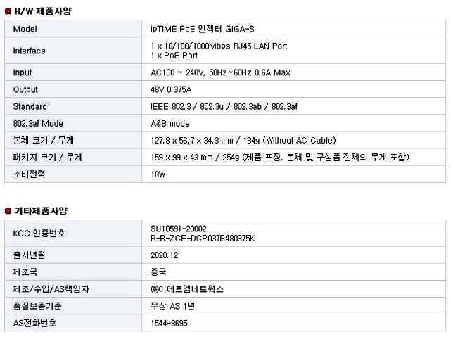 [NO_번호 : 42798] [수정일자 : 2026-01-18] PoE인젝터_GIGA-S